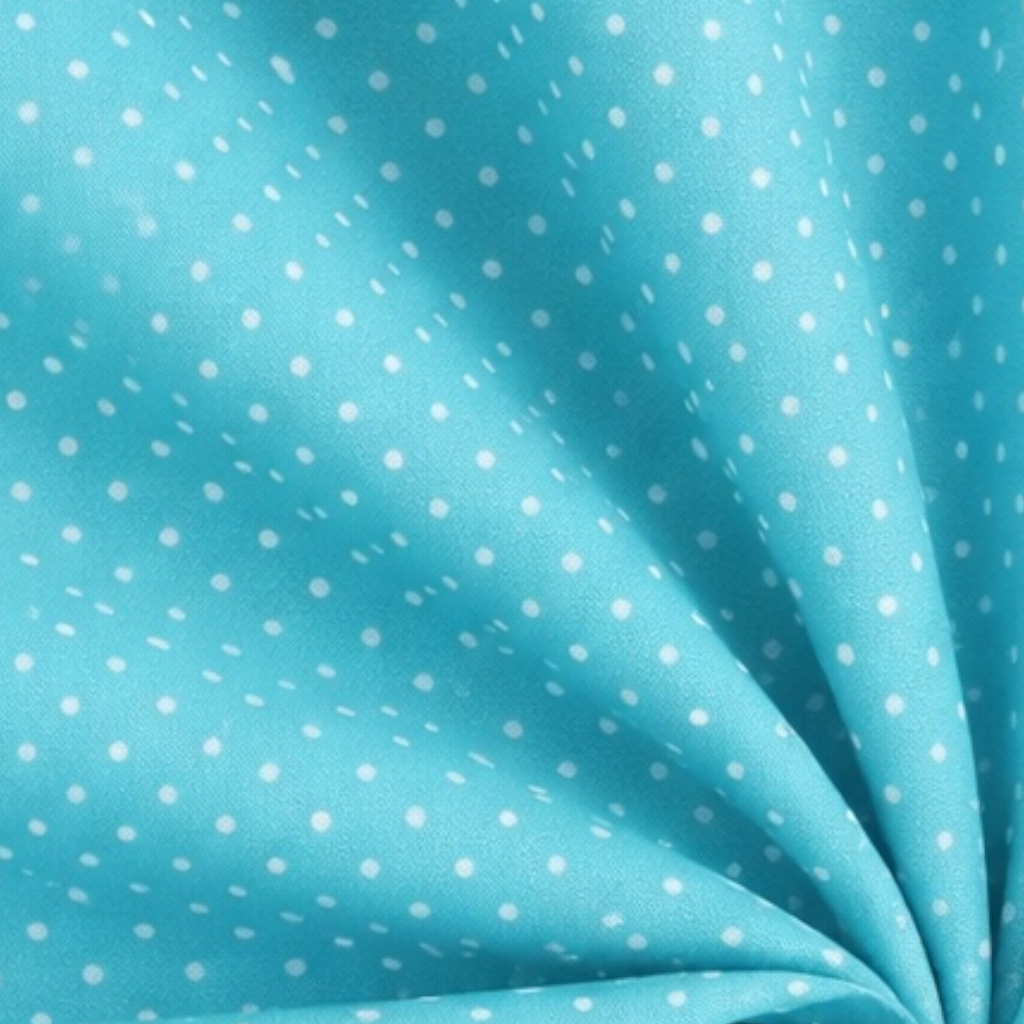 Popeline di cotone 100 % pois bianco/acqua,altezza 148 cm
