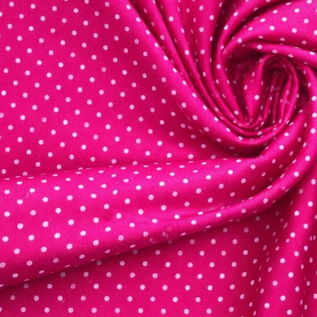 Popeline di cotone 100 % pois bianco/ fucsia, altezza 148 cm